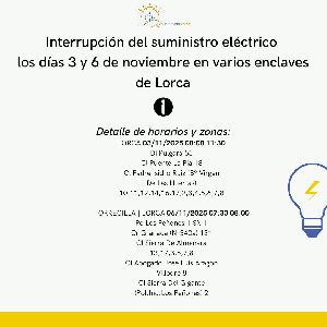 La suspensión temporal de energía eléctrica se llevará a cabo en horario de mañana y mediodía por mejoras y mantenimiento de la red Lorca, 31 de octubre de 2025. El concejal de Servicios Industriales del Ayuntamiento de Lorca, Antonio David Sánchez Alcaraz,...