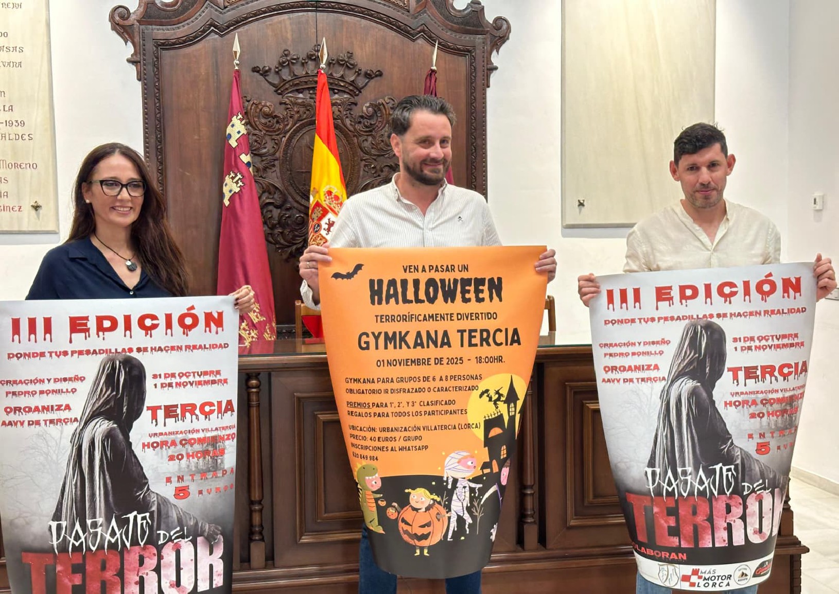 Lorca, 23 de octubre de 2025. Tercia celebrará su particular Halloween los días 31 de octubre y 1 de noviembre. Así lo ha informado esta mañana el concejal de Talento Joven en el Ayuntamiento de Lorca, Antonio David Sánchez, junto con miembros de la asociación de vecinos de dicha pedanía y el diseñador del evento, Pedro Bonillo.