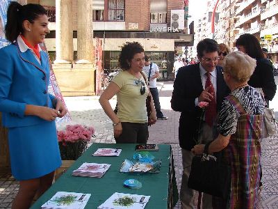 El Ayuntamiento de Lorca reparte 300 claveles a cambio de cigarrillos, por el Día Mundial Sin Tabaco