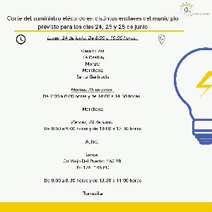 Lorca, 21 de julio de 2025. El concejal de Servicios Industriales del Ayuntamiento de Lorca, Antonio David Sánchez Alcaraz, ha informado de la interrupción temporal del suministro de energía eléctrica programada por la empresa Iberdrola para los días 23 y 24 de julio en horario de mañana, en distintas partes de Lorca.