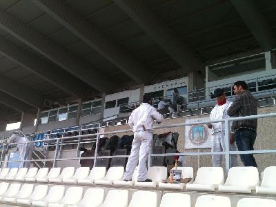 18 enero 2012. El Concejal de Deportes del Ayuntamiento de Lorca, Agustín Llamas, ha informado de que el Consistorio Municipal inició el pasado lunes una serie de actuaciones en el estadio municipal Francisco Artés Carrasco debido a los daños que está ocasionando en este recinto deportivo una plaga de palomas. Llamas ha señalado que ?se trata de un problema que está ocasionando graves perjuicios y deterioros en esta instalación. Ante las incidencias al respecto detectadas semanas atrás por parte de la Concejalía de Deportes, diseñamos una batería de actuaciones con el objetivo de acometer una puesta a punto del estadi