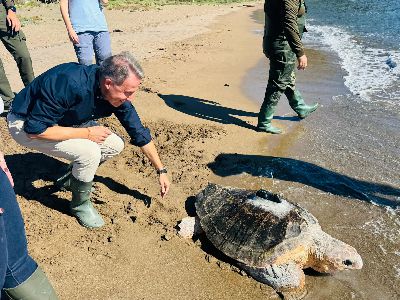 Se trata de un ejemplar adulto de tortuga boba de unos 70 kilos de peso, la más grande registrada hasta la fecha en la Región, que fue rescatada herida en La Manga del Mar Menor. Los veterinarios del Centro de Recuperación de Fauna Silvestre de El Valle han es...