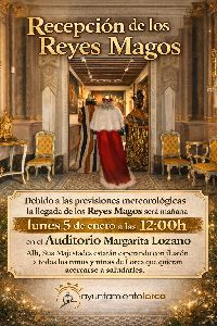 Debido a las previsiones meteorológicas y tras una reunión de coordinación celebrada esta mañana, se ha decidido trasladar la recepción de Sus Majestades los Reyes Magos, prevista inicialmente en la Plaza de España, al Auditorio Margarita Lozano, para garantiz...
