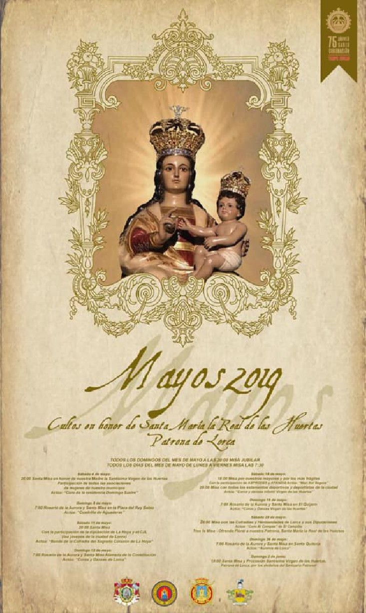 Cabe señalar que precisamente este año estamos de doble enhorabuena, ya que se cumple el 75 aniversario de la coronación canónica de la Virgen de las Huertas, motivo por el cual el Obispo de la Diócesis de Cartagena, José Manuel Lorca Planes, ha concedido un Tiempo Jubilar.