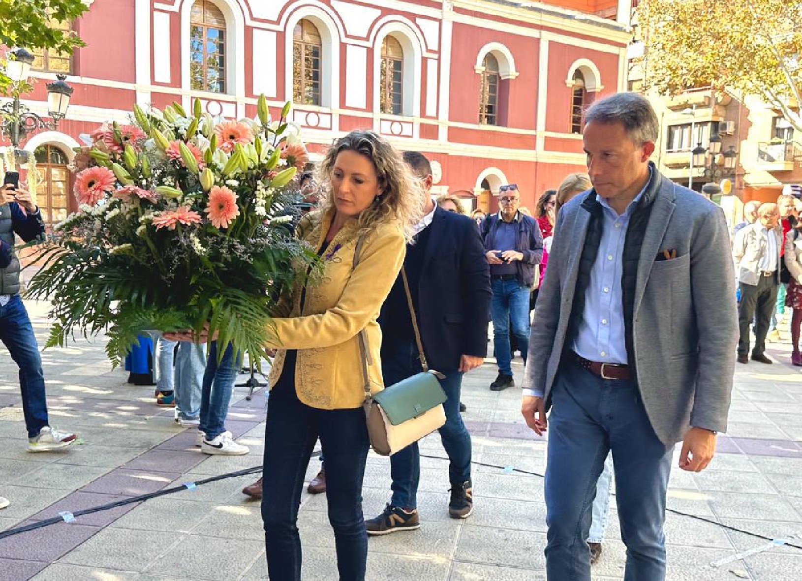 La plaza de Calderón de la Barca ha acogido un acto institucional protagonizado por la lectura de un manifiesto, un minuto de silencio y una emotiva ofrenda floral en el monolito