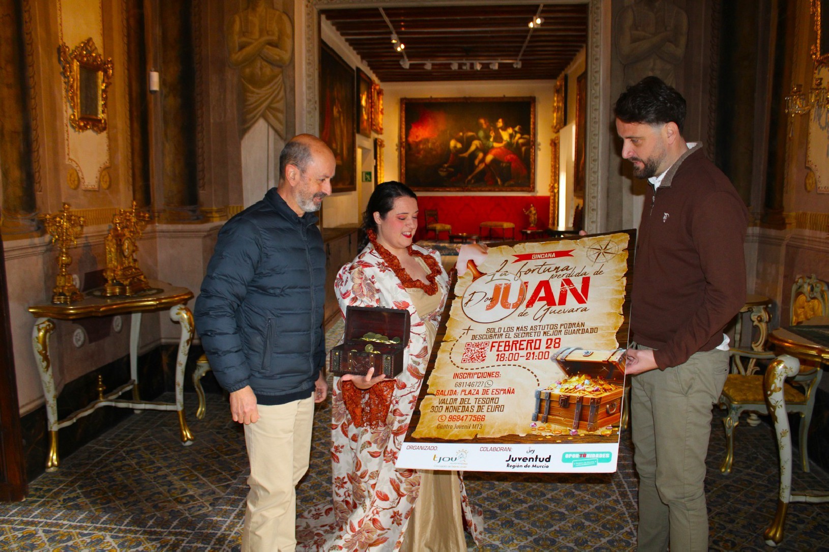 24 de febrero de 2025. El concejal de Talento Joven del Ayuntamiento de Lorca, Antonio David Sánchez, ha presentado este lunes “La fortuna perdida de Don Juan de Guevara”, una gymkana organizada por esta área de gestión municipal y que tiene como objetivo transformar Lorca en un gran escenario de aventura para ofrecer a todos los jóvenes lorquinos una tarde de diversión a través de la historia.
