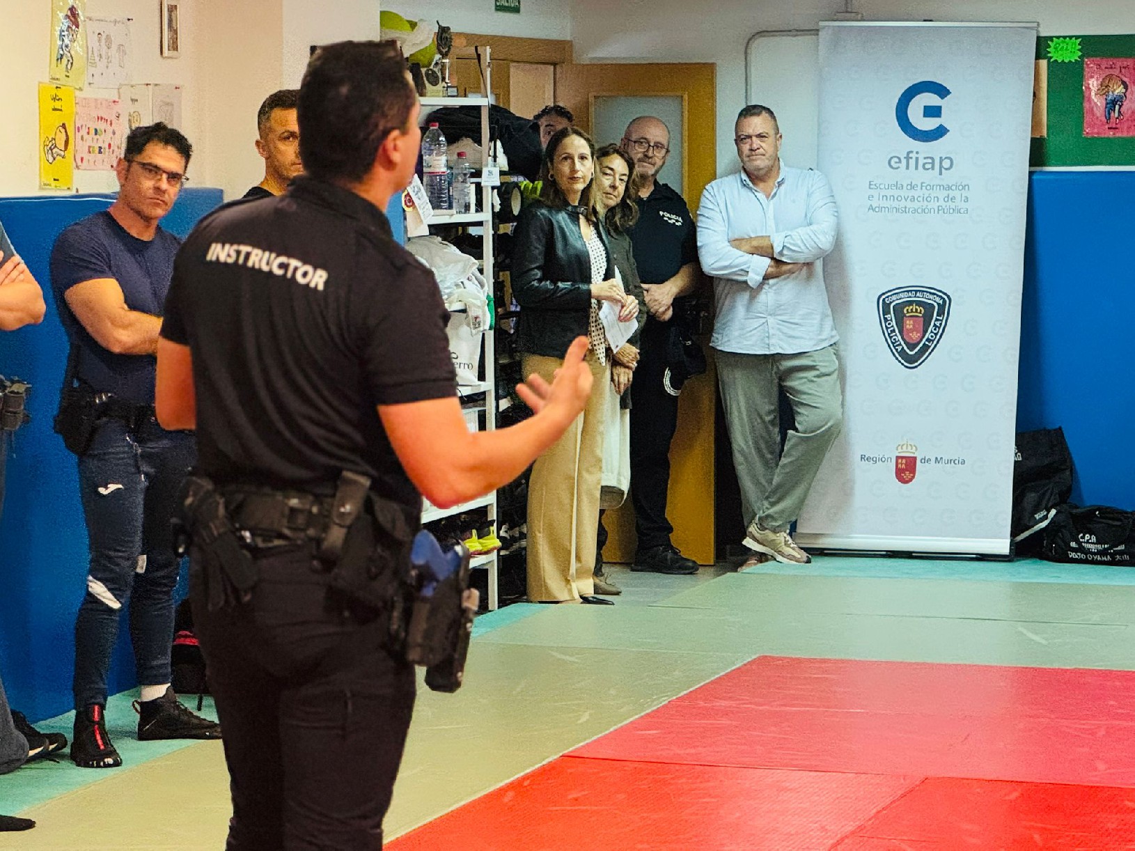 El curso ha sido inaugurado en la jornada de hoy por el concejal de Policía Local, Juan Miguel Bayonas, junto con la directora general de Función Pública y Diálogo Social de la Región de Murcia, Micaela Martínez Costa, la directora de la EFIAP, Caridad de la Hera y el comisario Jefe de la Policía Local de Lorca, Agustín Fernández, quienes han dado la bienvenida a los participantes en el Complejo Deportivo Felipe VI, sede de la acción formativa.