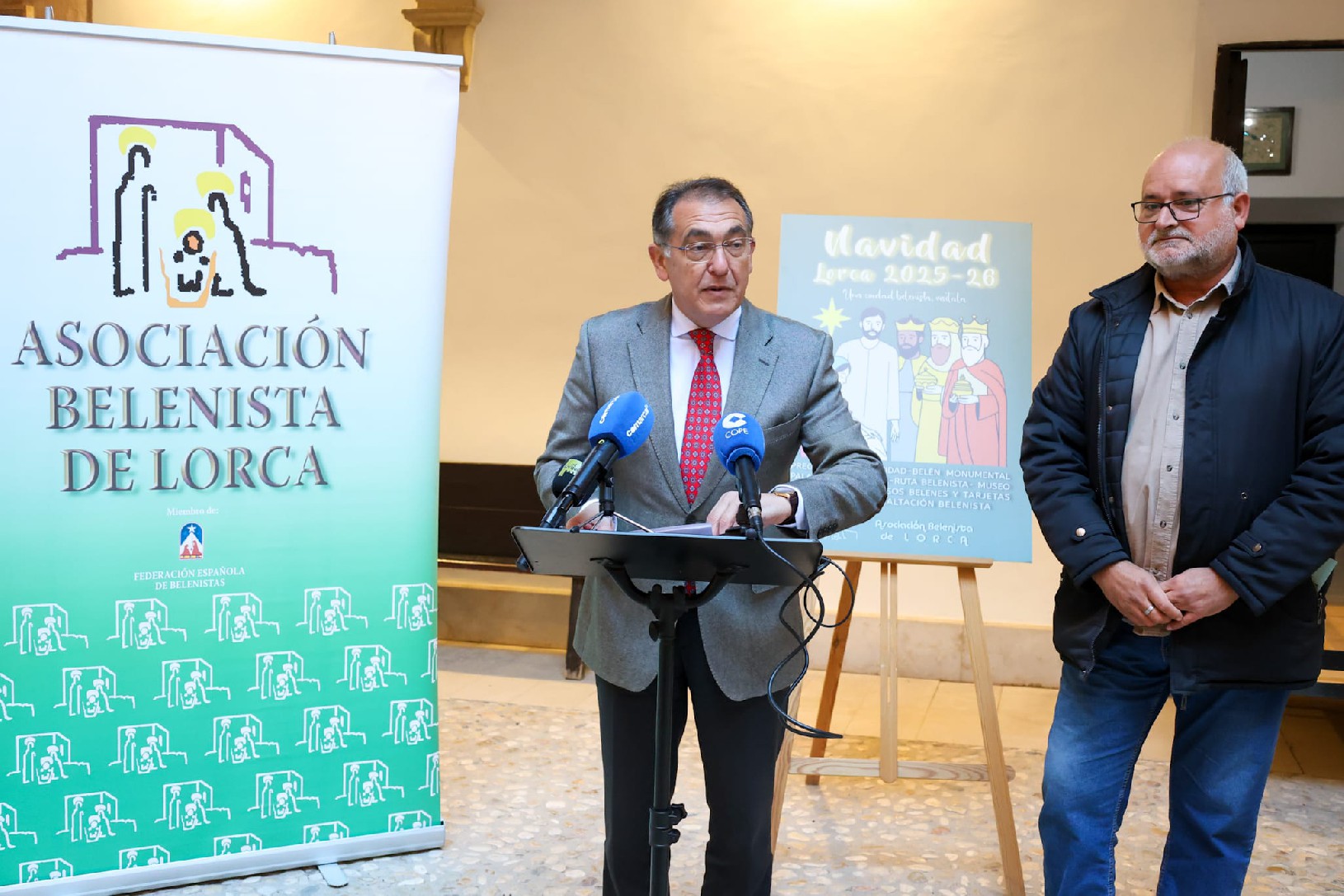 Lorca, 27 de noviembre de 2025. El concejal de Cultura, Santiago Parra Soriano, ha presentado, junto al presidente de la Asociación Belenista de Lorca, Miguel Ángel Hernández, el programa de citas organizadas por la entidad, en colaboración con el Ayuntamiento, y que supone “toda una oferta de opciones relacionadas con la tradición de los montajes belenistas dirigidas a promocionar entre todos los públicos este arte de calado religioso tan arraigado en nuestra localidad.