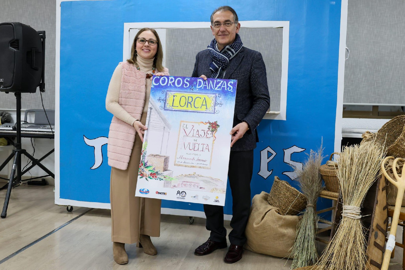 Lorca, 17 de diciembre de 2025. El concejal de Cultura del Ayuntamiento de Lorca, Santiago Parra, junto a la presidenta de la agrupación Coros y Danzas de Lorca, Antonia Martínez, ha presentado el espectáculo “El viaje de vuelta”, que tendrá lugar el martes 23 de diciembre, a las 21:00 horas, en el Auditorio Margarita Lozano.