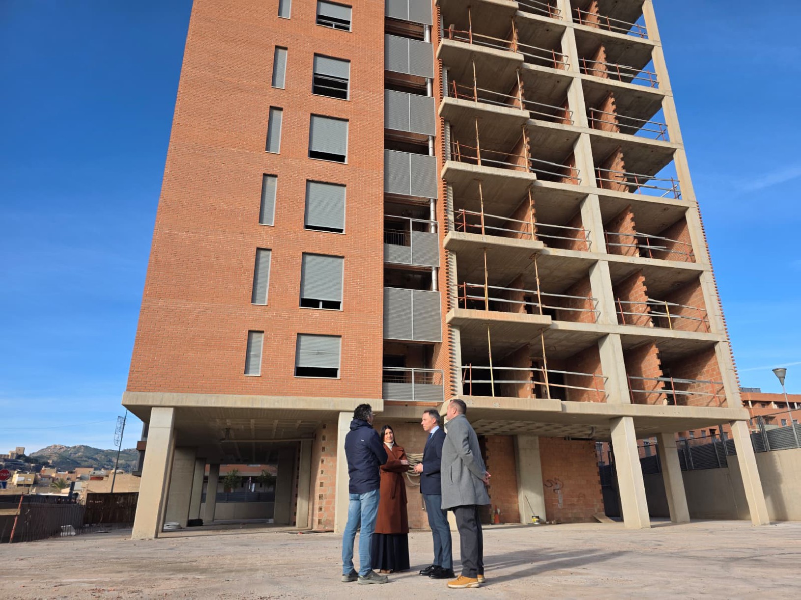 Lorca, 26 de enero de 2026. El alcalde de Lorca, Fulgencio Gil, ha informado que la reactivación de las obras de construcción de un bloque de viviendas existente junto al Campus universitario de nuestra ciudad, constituye un ejemplo claro de que los elementos de estímulo que estamos impulsando desde el Ayuntamiento de Lorca y en concreto, a través de la concejalía de urbanismo, están surtiendo efecto. Se trata de un inmueble cuyas obras quedaron paralizadas hace varios años, y que había sufrido problemas de ocupación y vandalismo, ante los que los propietarios tuvieron que acometer varias medidas de vigilancia.