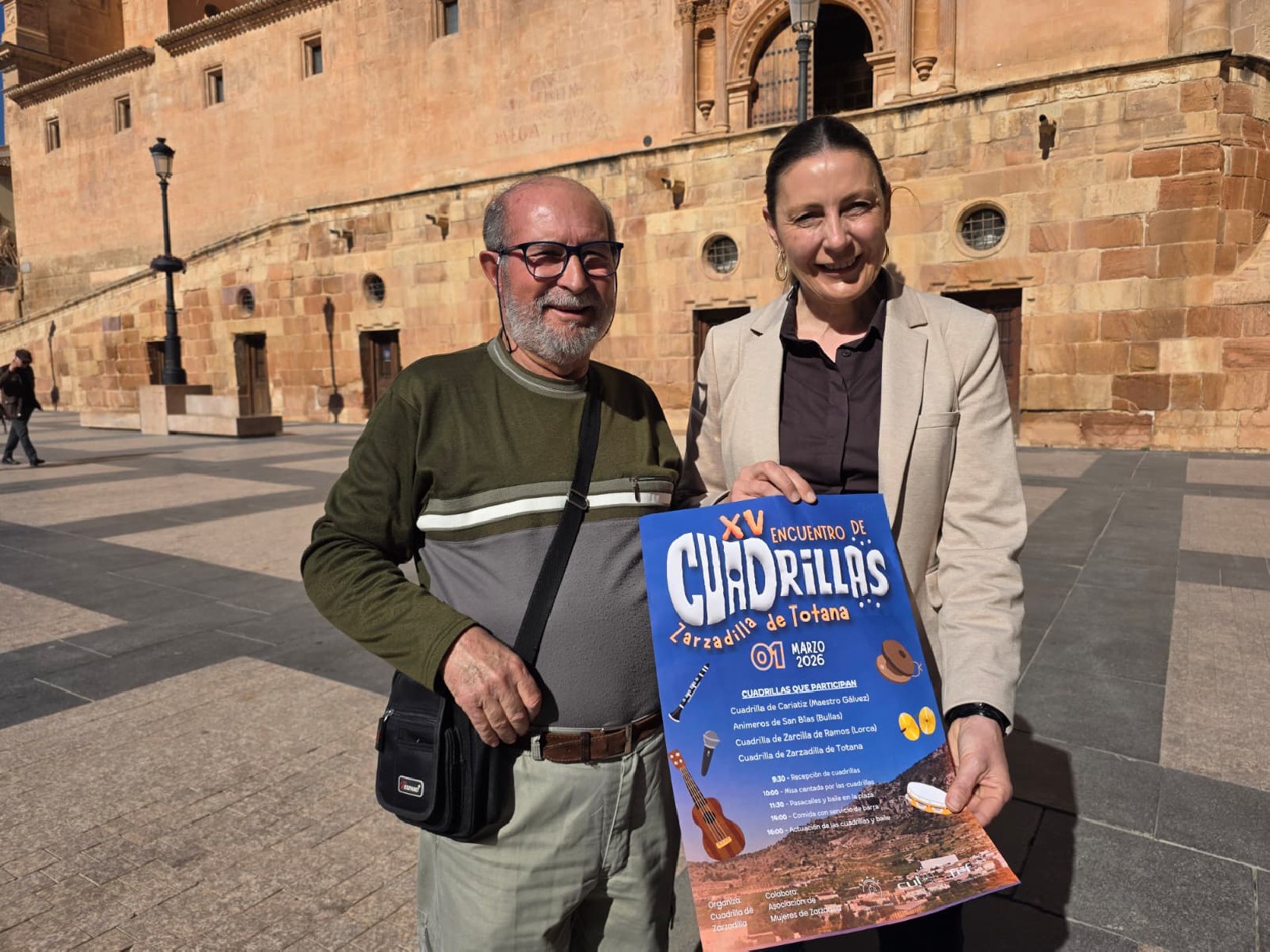 María de las Huertas García, edil de Festejos y Tradiciones: “Invitamos a todos a acercarse a Zarzadilla de Totana el próximo 1 de marzo para compartir un día de convivencia, tradición y música popular. Es una oportunidad única para disfrutar de nuestras cuadrillas y del ambiente festivo que caracteriza a nuestras pedanías”