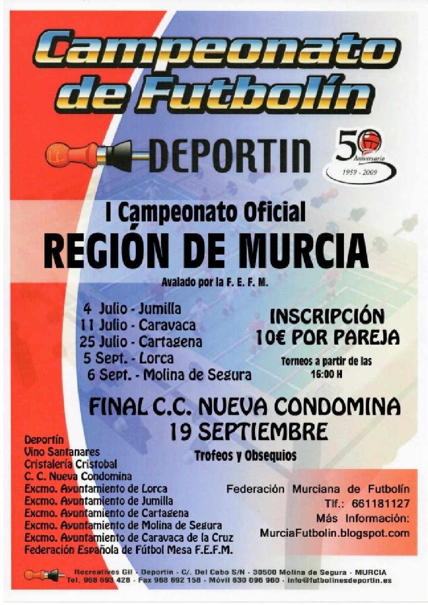 El acto esta organizado por la Federación Española de Futbolín, a través de su delegación en Murcia, colaborando en el evento el Ayuntamiento de Lorca.