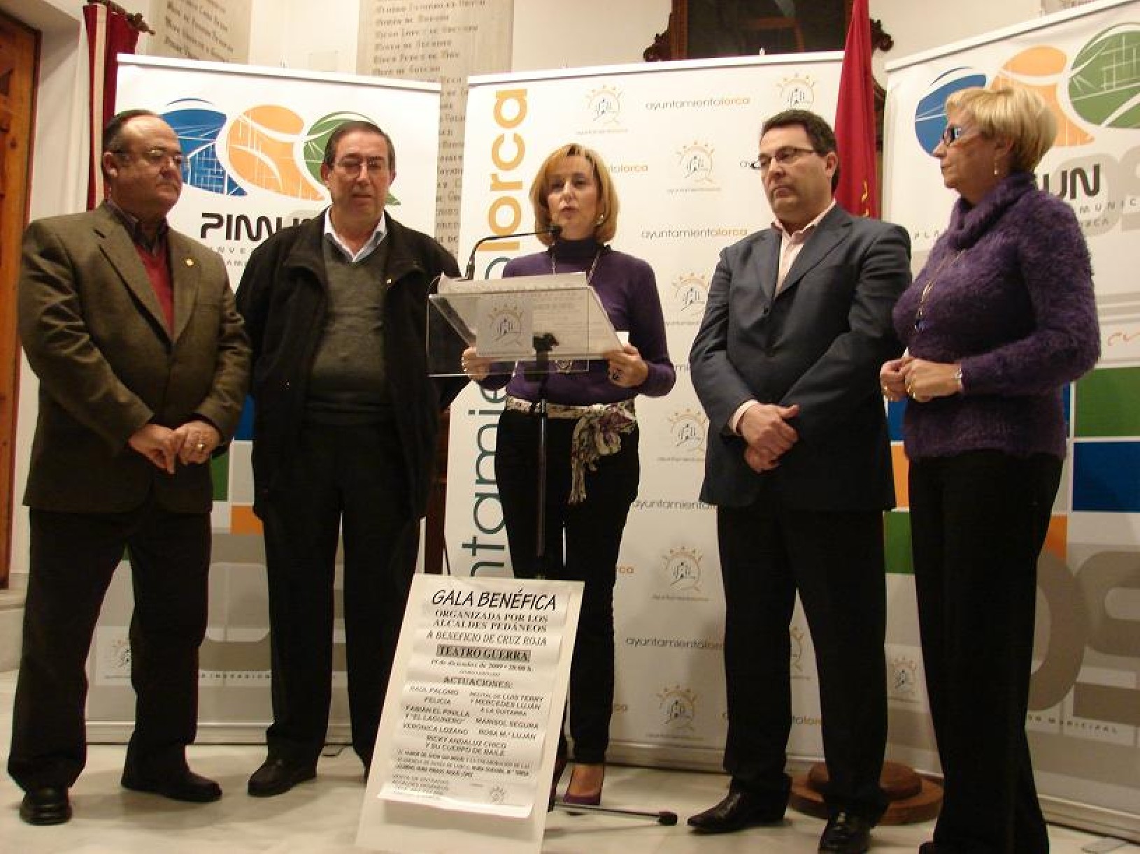 La Concejal de Atención Social del Ayuntamiento de Lorca, Lali Ibarra; el Presidente de Cruz Roja, Juan Carlos García, y una representación de los alcaldes pedáneos y de barrio de Lorca han presentado esta mañana la gala benéfica que los pedáneos han organizado para este sábado a favor de esta ONG en el Teatro Guerra a las 20:00 horas.